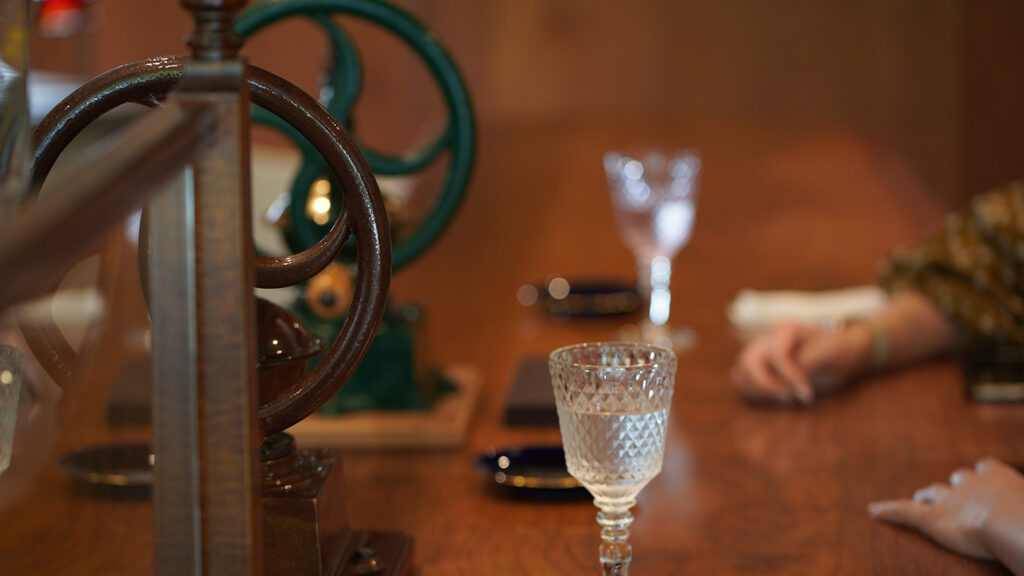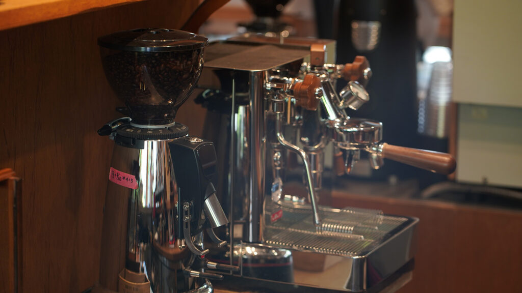 「豆を挽く」「抽出する」様子をご覧いただきながらお待ちください。